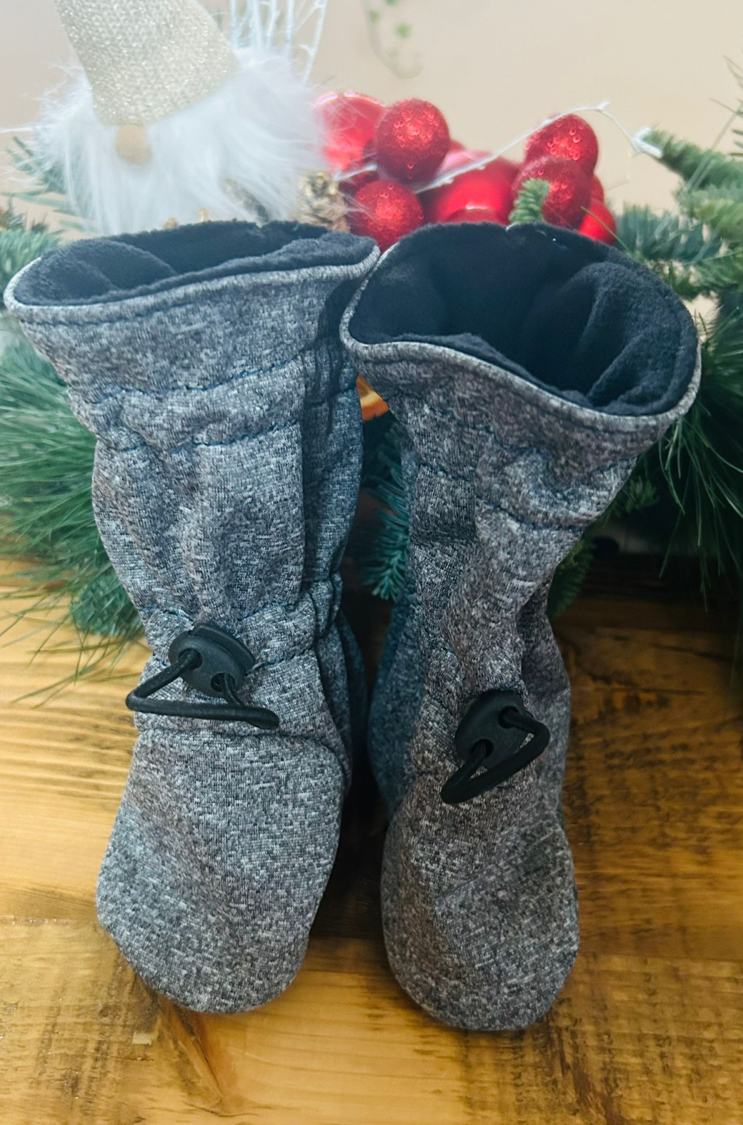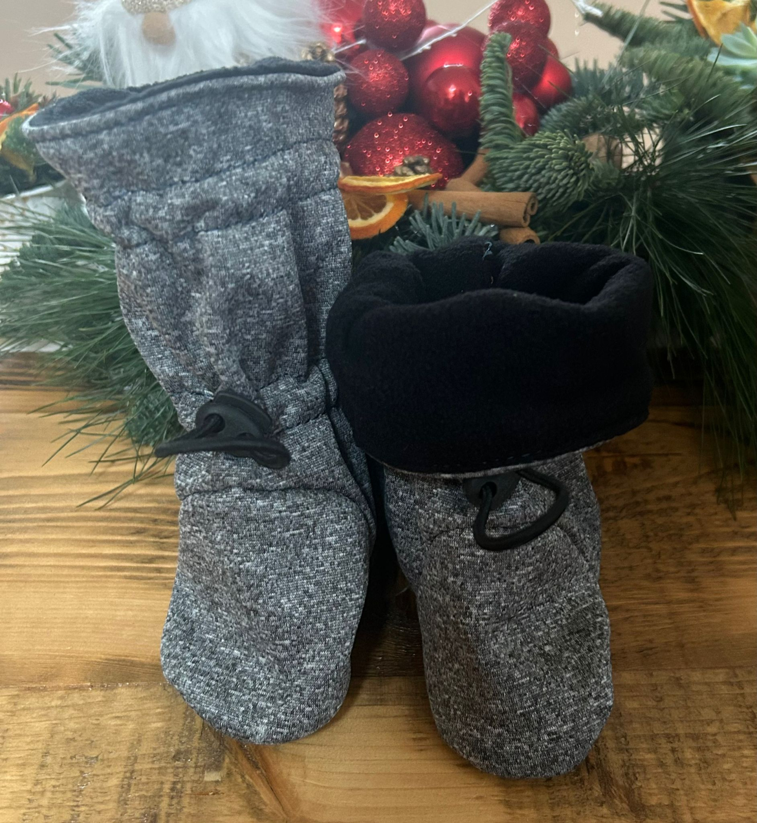 Botoșei babywearing din softshell și polar moale, ideali pentru a menține piciorușele bebelușului calde și protejate în timpul purtării. Exterior rezistent la vânt și umezeală, interior călduros și delicat.