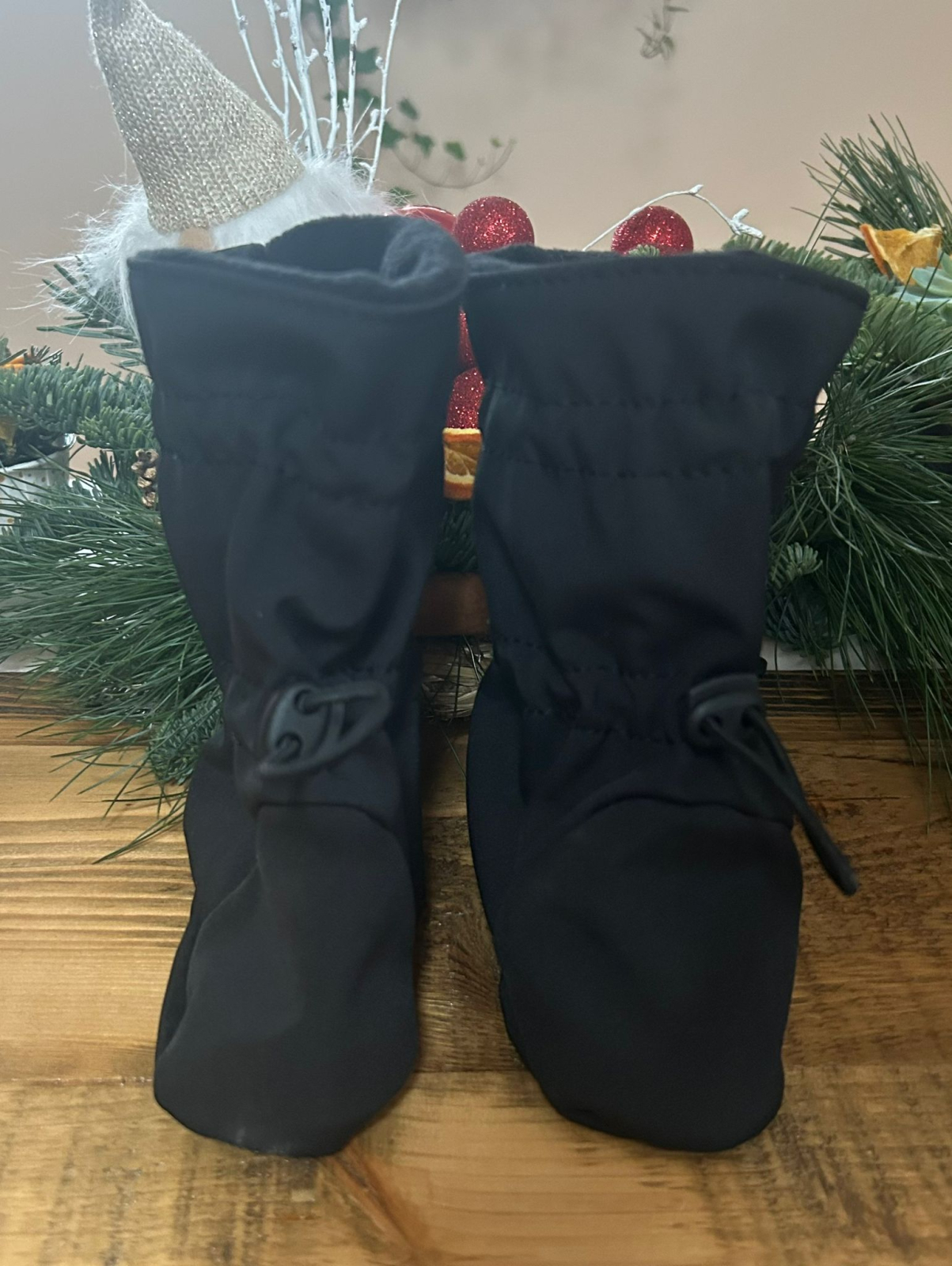 Botoșei babywearing din softshell și polar moale, ideali pentru a menține piciorușele bebelușului calde și protejate în timpul purtării. Exterior rezistent la vânt și umezeală, interior călduros și delicat.