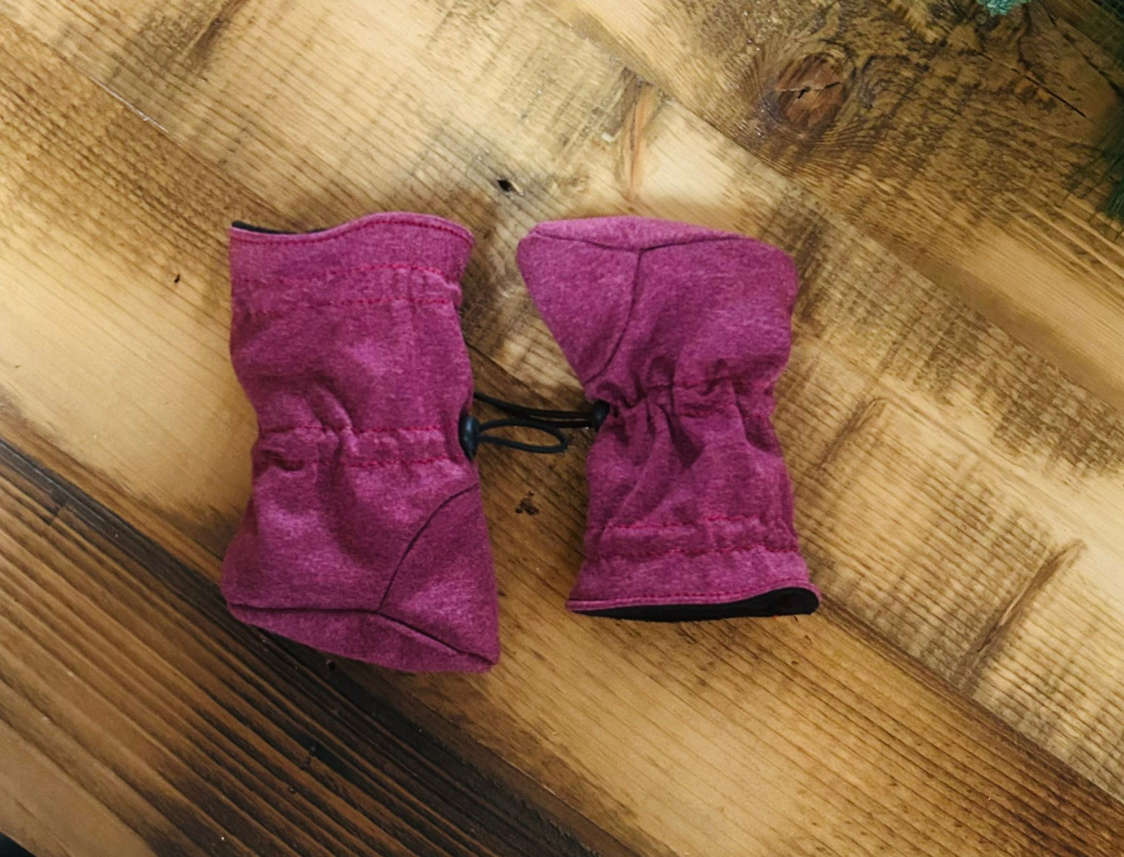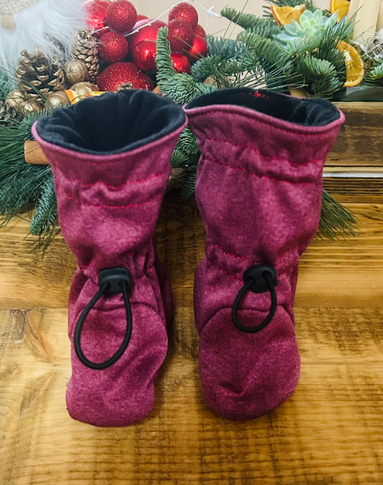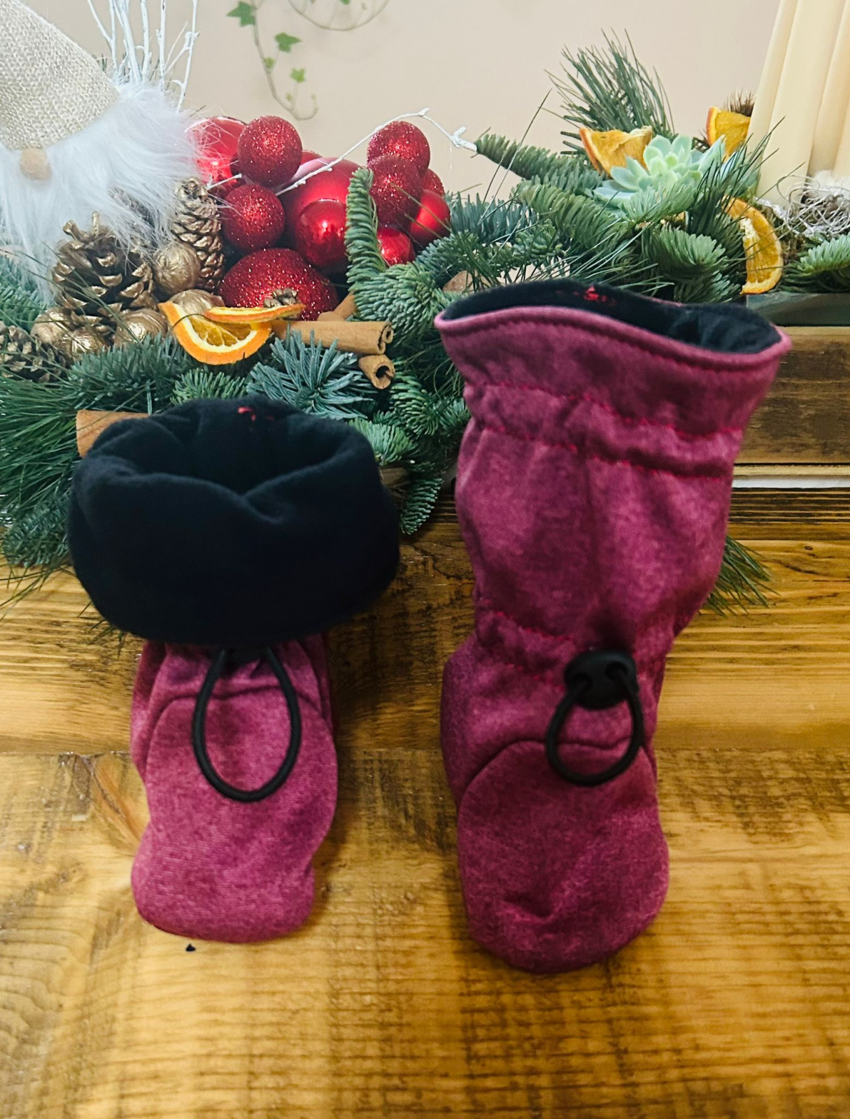 Botoșei babywearing din softshell și polar moale, ideali pentru a menține piciorușele bebelușului calde și protejate în timpul purtării. Exterior rezistent la vânt și umezeală, interior călduros și delicat.