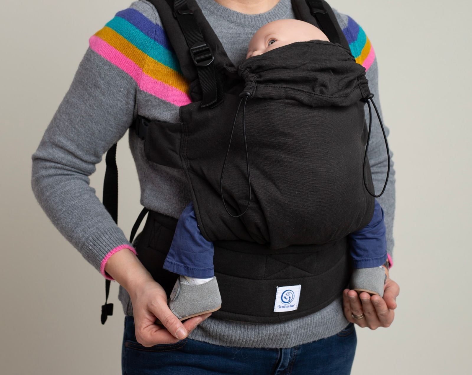 Centura reprezintă una dintre cele mai apreciate inovații, fiind extrem de confortabilă atât pentru purtarea unui bebeluș mic, cât și a unui copil de 18 luni. Este realizată dintr-o spumă specială folosită în babywearing și matlasată pentru susținere optimă, distribuind uniform greutatea copilului și reducând presiunea asupra zonei lombare.