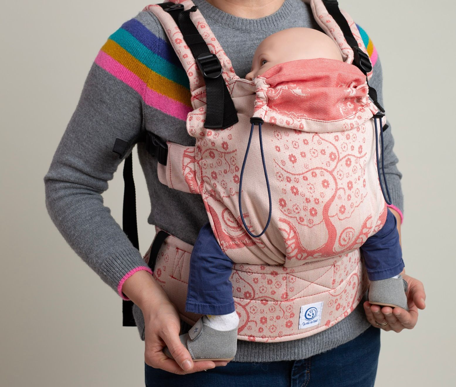 Puntea sistemului se poate strâmta considerabil datorită scaiului poziționat pe interior, fiind potrivită chiar și pentru un nou‑născut. Pe măsură ce copilul crește, puntea se lărgește treptat, astfel încât materialul să susțină corect coapsele — din spatele unui genunchi până în spatele celuilalt — formând poziția ergonomică în „M”.