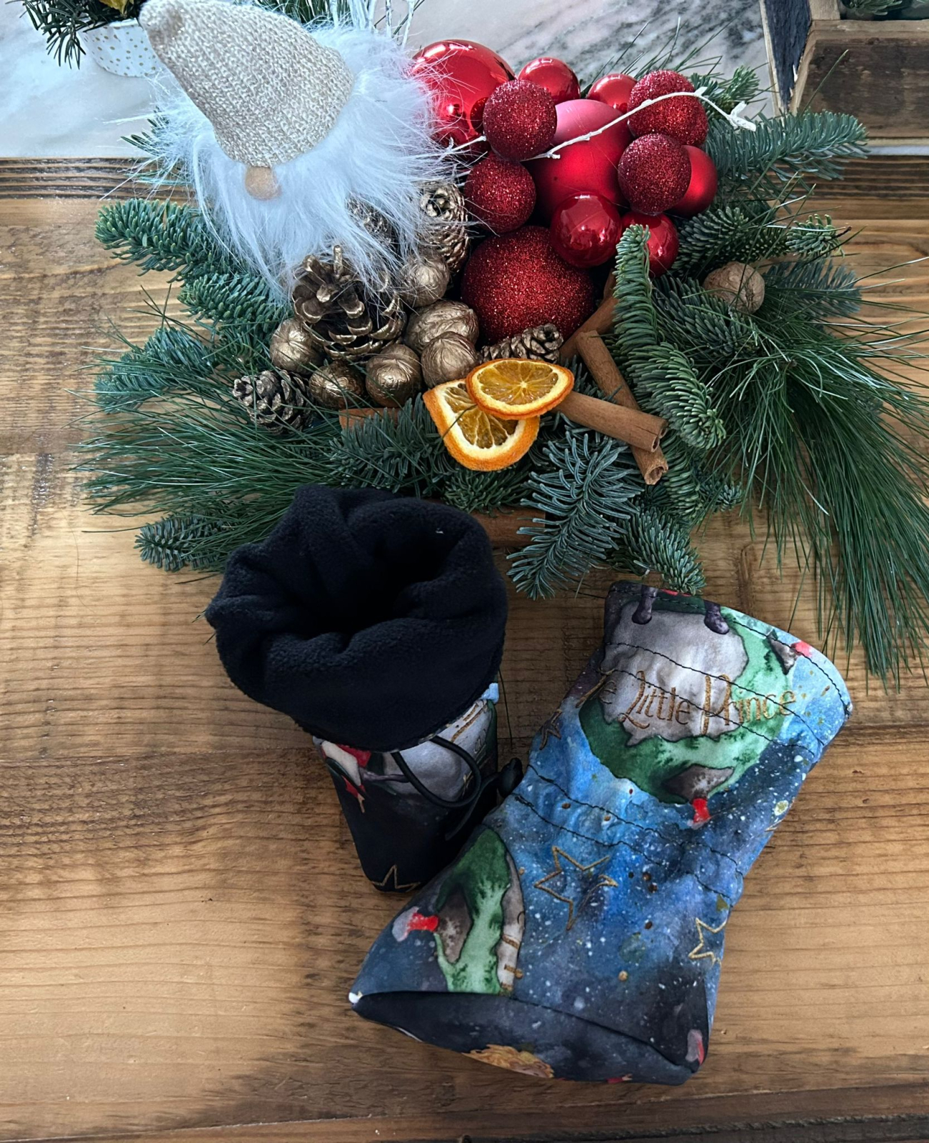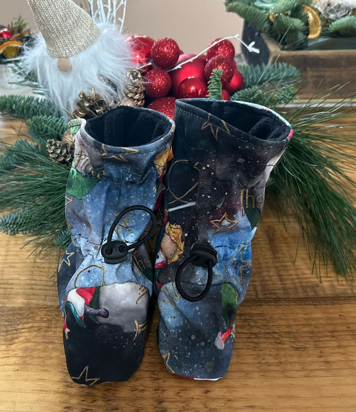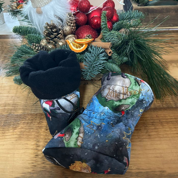 Botoșei babywearing din softshell și polar moale, ideali pentru a menține piciorușele bebelușului calde și protejate în timpul purtării. Exterior rezistent la vânt și umezeală, interior călduros și delicat.