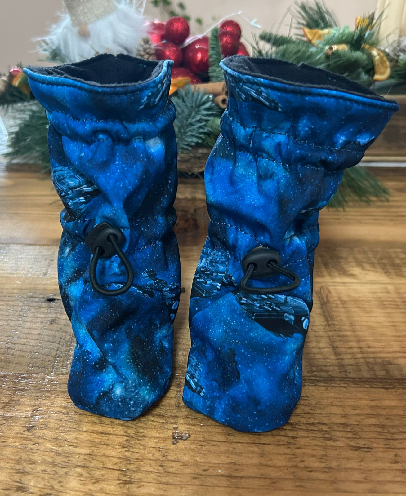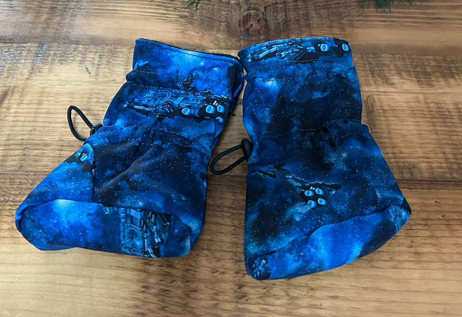 Botoșei babywearing din softshell și polar moale, ideali pentru a menține piciorușele bebelușului calde și protejate în timpul purtării. Exterior rezistent la vânt și umezeală, interior călduros și delicat.