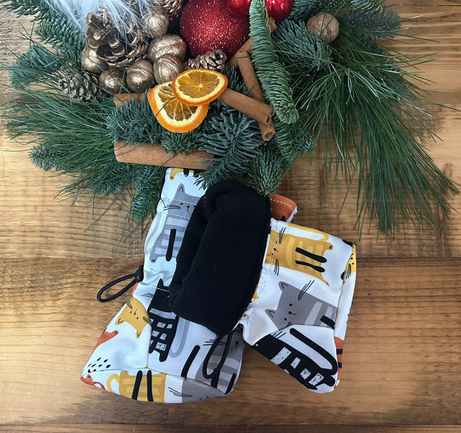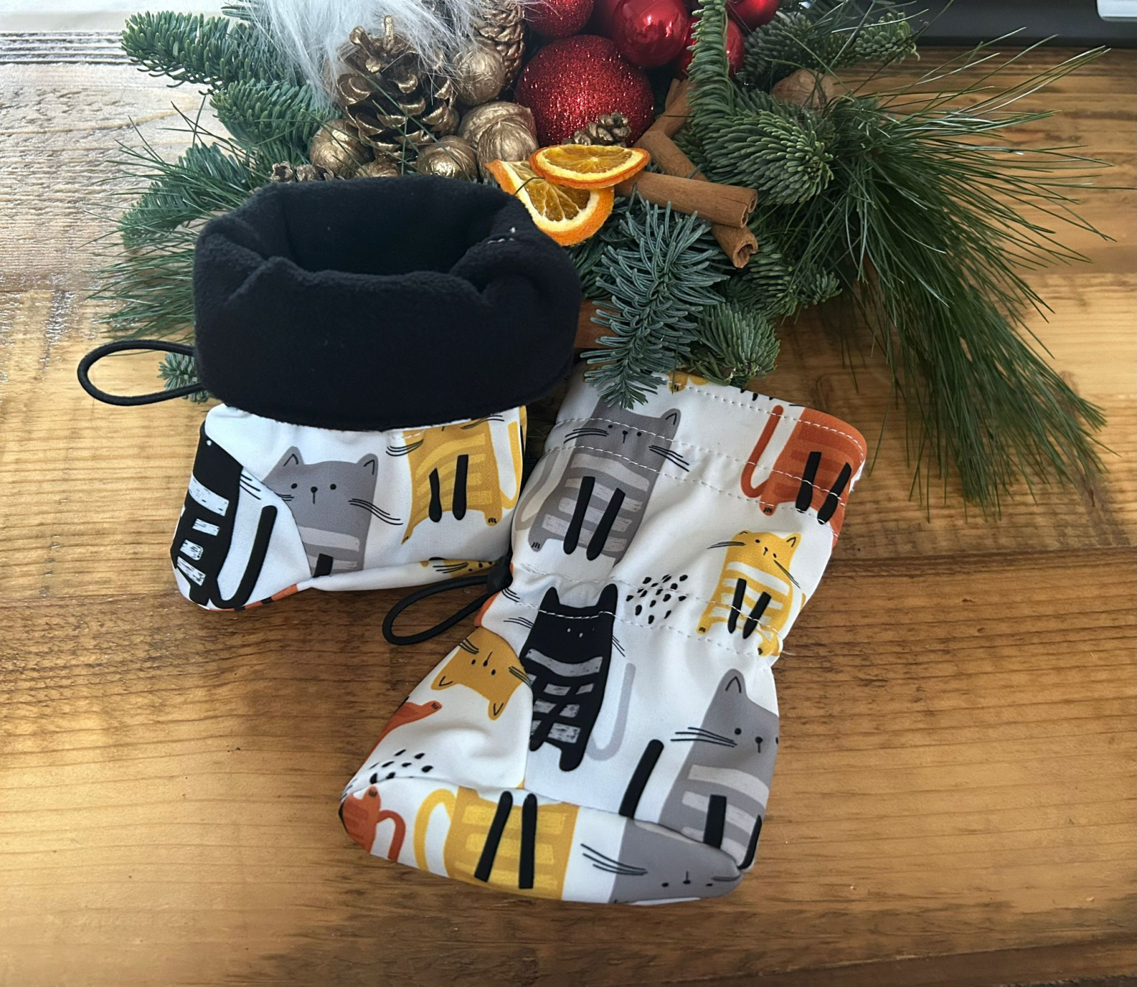 Botoșei babywearing din softshell și polar moale, ideali pentru a menține piciorușele bebelușului calde și protejate în timpul purtării. Exterior rezistent la vânt și umezeală, interior călduros și delicat.