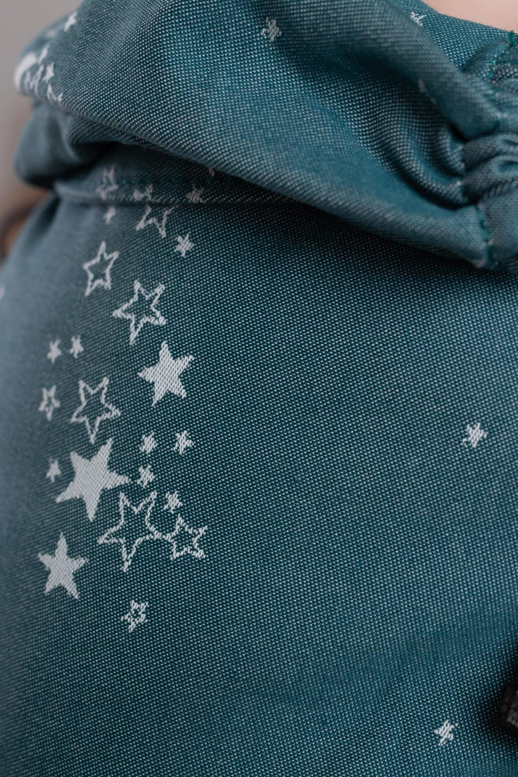 Materialul folosit este bumbac țesut 100%, într-o țesătură jacquard de 230 g/m², produsă special pentru noi de JAC Art. Este certificat OEKO-TEX Standard 100, garantând siguranță pentru pielea sensibilă a bebelușilor și vopsele non-toxice. Bumbacul este natural, non-alergen, respirabil, absoarbe și elimină umezeala, nu eliberează particule iritante și poate fi sterilizat cu ușurință. Cataramele Duraflex și chingile sunt certificate pentru calitate și rezistență conform standardelor internaționale.